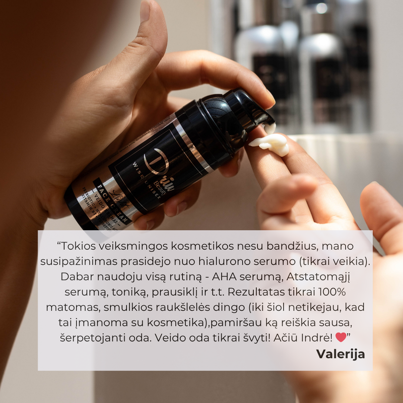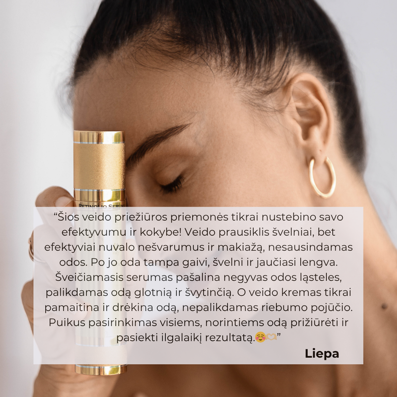 "Daugiau nei 10-imt metų kuriu kosmetiką, konsultuoju klientes ir formuoju priežiūros rutinas, kurios sprendžia odos problemas ir padeda ilgiau išsaugoti odos jaunystę. Pastovi ir tinkamai parinkta rutina yra raktas į sveiką ir švytinčią odą. Remdamasi patirtimi konsultuojant ir parenkant kosmetikos produktus, sukūriau sistemą, kuri veikia."