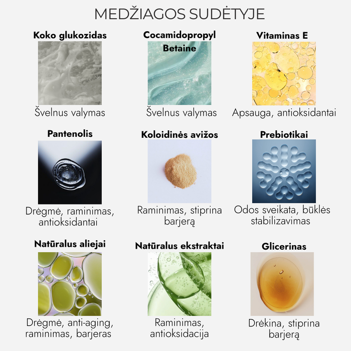Medžiagos, kurios švelniai šalina nešvarumus ir nesausina odos